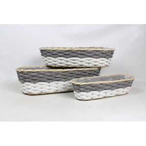- 134019 - S/3 Jardinières ovales osier " Lisette " - GM 49x18xh12,5 MM 44x14xh10,5 PM 37x11xh9 cm