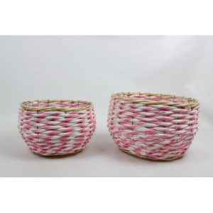 - 134039 - S/2 Coupes blanc et rose " Léontine " GM Ø26xh15,5 PM Ø21,5xh13 cm