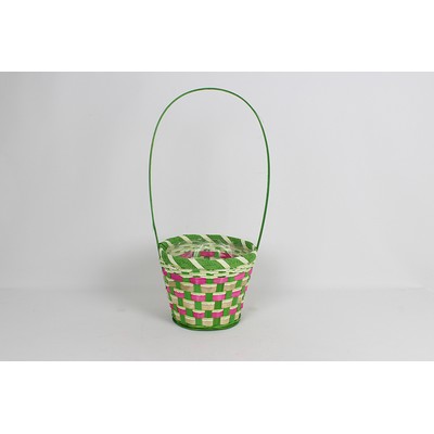 - 804106 - Panier cache-pot vert/fuchsia - Ø18,5 x h 14,5 intérieur